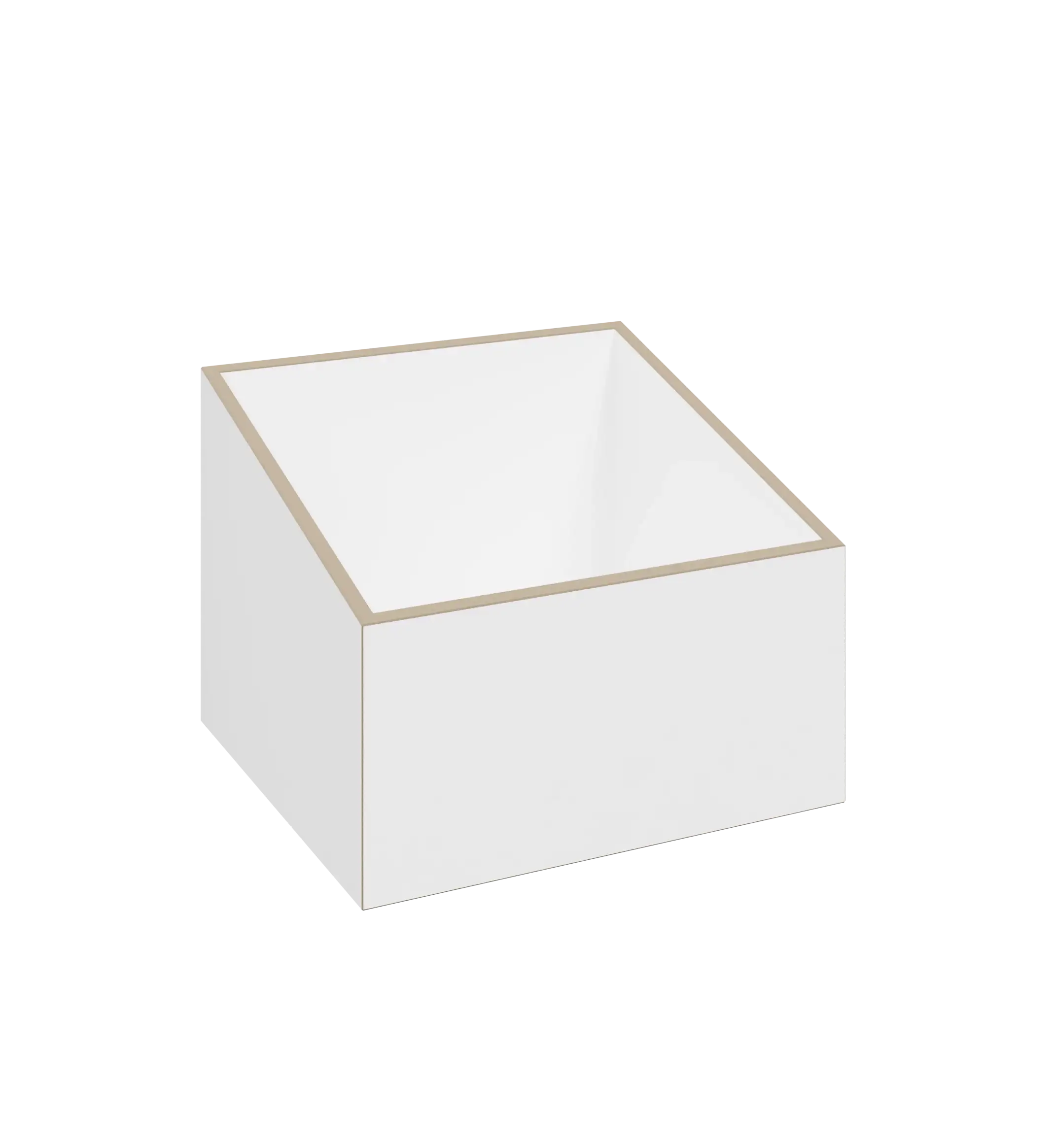 Das F3 Modul entspricht in Größe und Volumen dem Standard 1:1 Cube, hat aber zwei zusätzliche Fachböden und damit drei Fächer. In diesem Modul lassen sich hervorragend Zeitschriften, Hefter oder auch Schallplatten unterbringen. Das Material ist weiß beschichtetes MDF, die Rückwand ist ebenfalls weiß beschichtet. Für das F3 Modul können Sie unter diesem Link drei Schubladen bestellen. Wenn Sie die Schubladen zusammen mit dem Modul bestellen, bringen wir die Laufleisten für Sie an. Selbstverständlich können Sie die Schubladen auch nachträglich bestellen und selber anbringen. Die Anleitung zur einfachen Anbringung schicken wir mit. Die Laufleisten sind erforderlich, damit Sie das F3 Modul auch von vorne verklammern können.