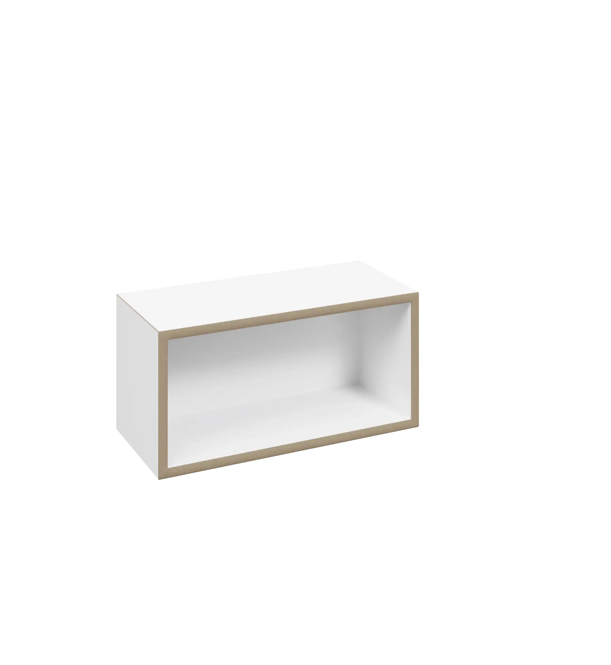 Le cube 1:1, demi-profondeur avec porte est la variante demi-profondeur du cube 1:1 standard avec une porte. Il est spécialement conçu pour les étagères pour lesquelles la pleine profondeur n'est pas nécessaire d'un point de vue fonctionnel ou n'est pas souhaitée d'un point de vue esthétique. En outre, il est du plus bel effet au mur. Le matériau est du MDF blanc, le fond du cube est également blanc.